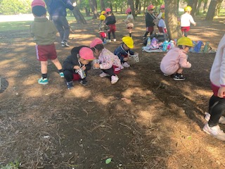 ももぐみさんはどんぐり拾い♪をしてから一足先に幼稚園へ。