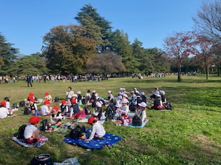 他の学年はシートを敷いてわいわいしながらお弁当タイム。