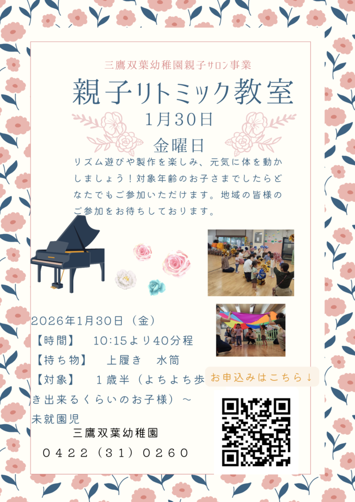 本年も楽しく「親子リトミック教室」で楽しみましょうね^^