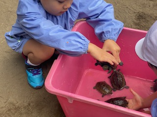 大きなひつじややぎにびっくりしながらも野菜をあげたり小さなひよこやうさぎを抱っこしたり(^-^)