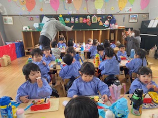お昼ごはんの時間になり配られた時のキラキラした目はかわいかったです♡